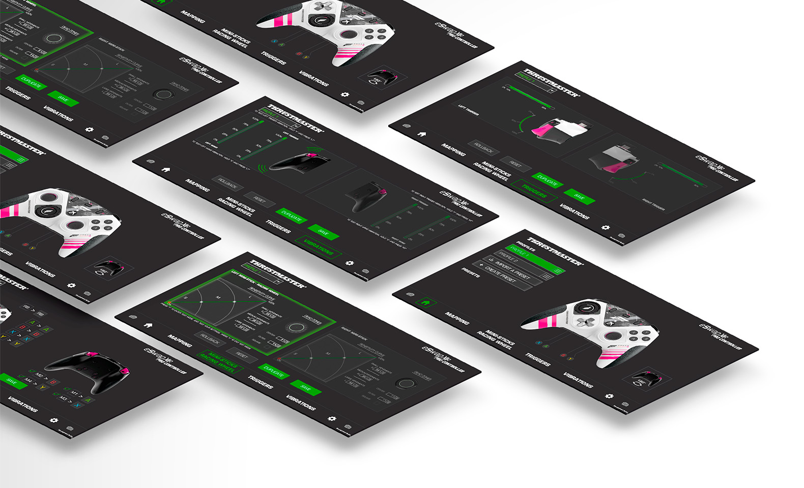 Adjust the sensitivity and other settings of the mini-sticks, RACING WHEEL MODULE and the triggers with the ThrustmapperX software. When RACING WHEEL MODULE is inserted, the D-pad inputs are automatically assigned to the rear buttons (1, 2, 3, 4). ThrustmapperX is available for Windows, and accessible directly via the Xbox menu!