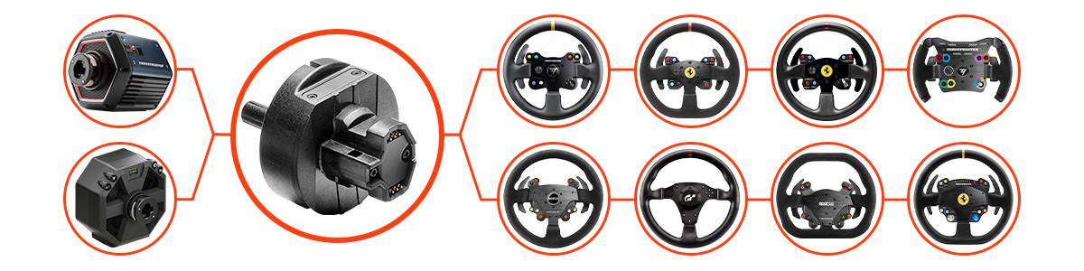 Convierte tu aro de volante de Thrustmaster al nuevo estándar de quick release Direct Drive con el Quick Release Upgrade. Este sistema de fijación hace que tu aro de volante sea compatible de forma nativa con la base T818 y futuras bases de Thrustmaster, y mejora la sensación del Force Feedback mientras garantiza la transmisión de efectos sin filtro.