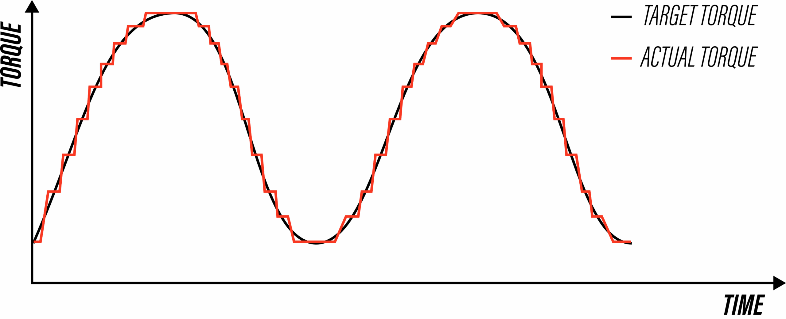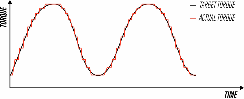 As you can see, the bumps in the actual torque curve are the results of cogging torque. The magnets “snap” with each other for a short period of time when passing in front of each other. You may have experienced it in a First-Generation Direct Drive wheelbase, when moving the wheel slowly.