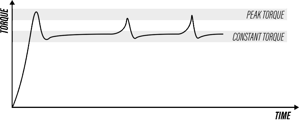 Peak torque and constant torque are radically different, yet often misunderstood and used interchangeably. For reasons we explain further in this paper, a motor does not output the same power all the time. Instead, it can deliver brief peaks before stabilizing to a constant torque value. In motors made for sim racing, the peaks in Torque usually only last few milliseconds.
