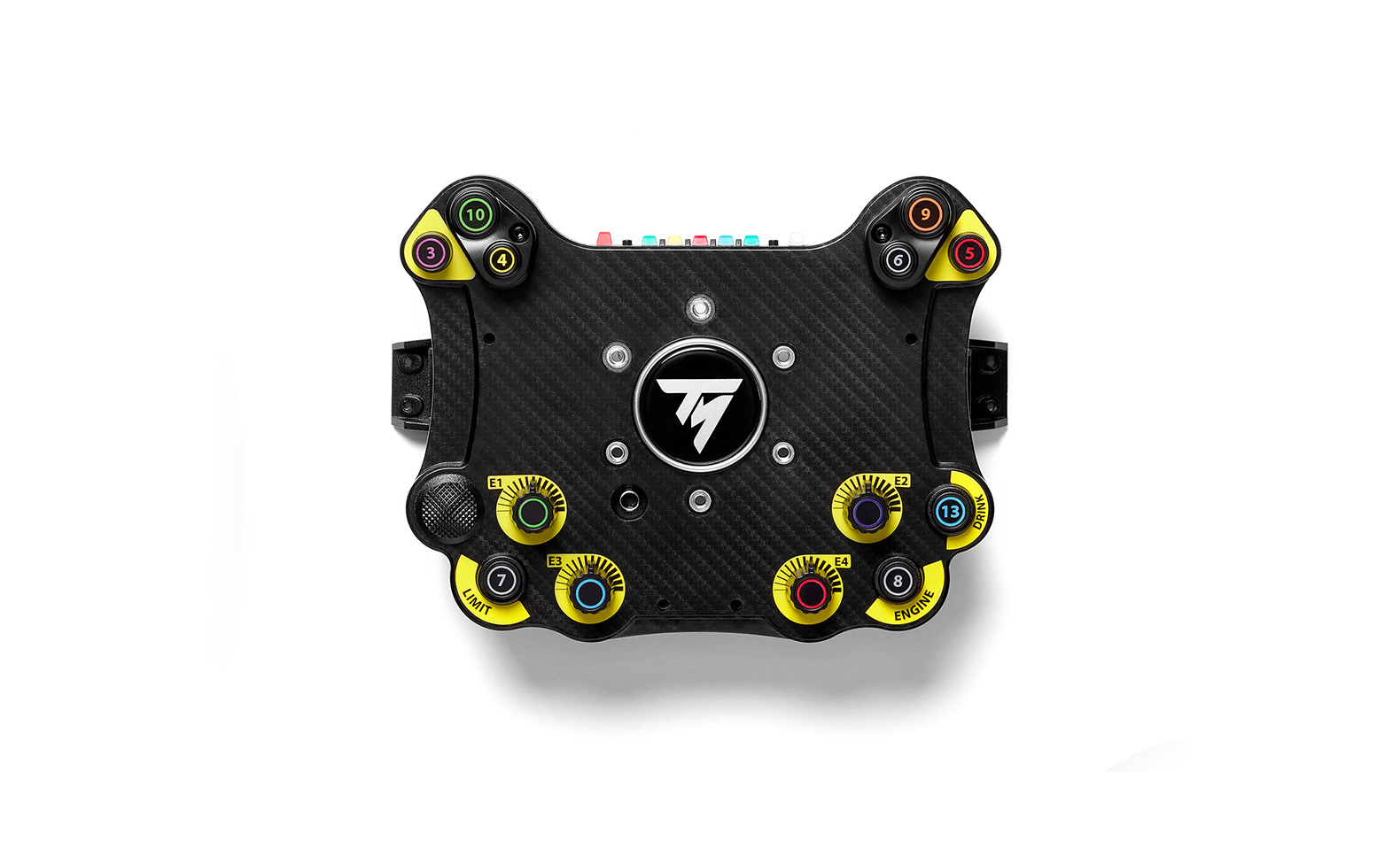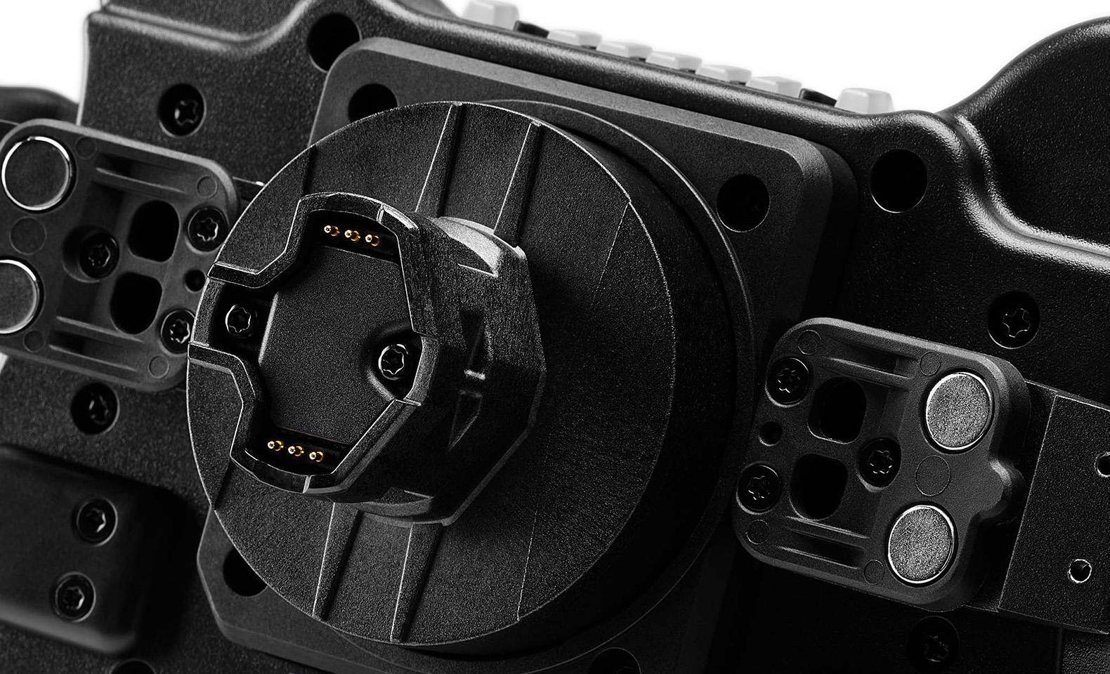 EVO Racing Hub is your wheel rim’s control center. It features 25 action buttons, including 4 rotary encoders and an ergonomic D-pad. It’s equipped with Mag-Shift sensor-based paddle shifter modules for incredibly responsive gear shifting, and slots for analog paddle shifters (sold separately). Its 7 LEDs* provide race information (PIT, FLAG, RPM) via two display modes to adapt to the engine RPM specific to different types of vehicles.