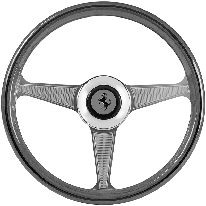 Diseñada con materiales de máxima calidad que incluyen un robusto armazón metálico (con ambos lados cubiertos por un acabado en madera genuina), un logotipo cromado auténtico y una atractiva placa frontal metálica, esta suntuosa réplica a escala 8:10 (33 cm de diámetro) del volante del Ferrari 250 GTO ha sido creada especialmente para conseguir una inmersión total en los prolíficos 70 años de historia de Ferrari.