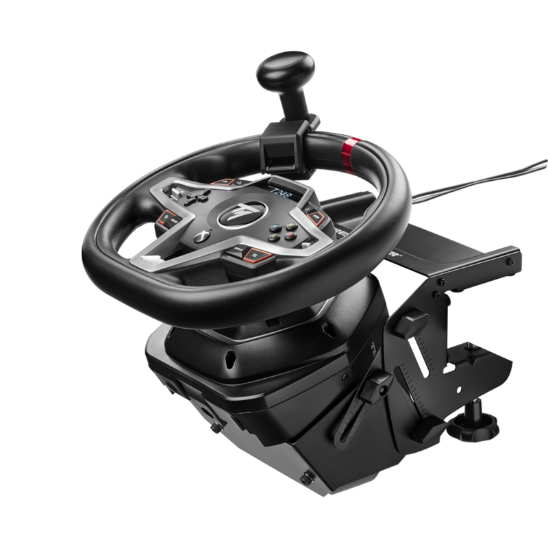 A l’occasion de la Gamescom, Thrustmaster présente son nouveau système de fixation pour volant unique en son genre accompagné de sa boule de manœuvre : un ensemble parfait pour la simulation de conduite de véhicules lourds.