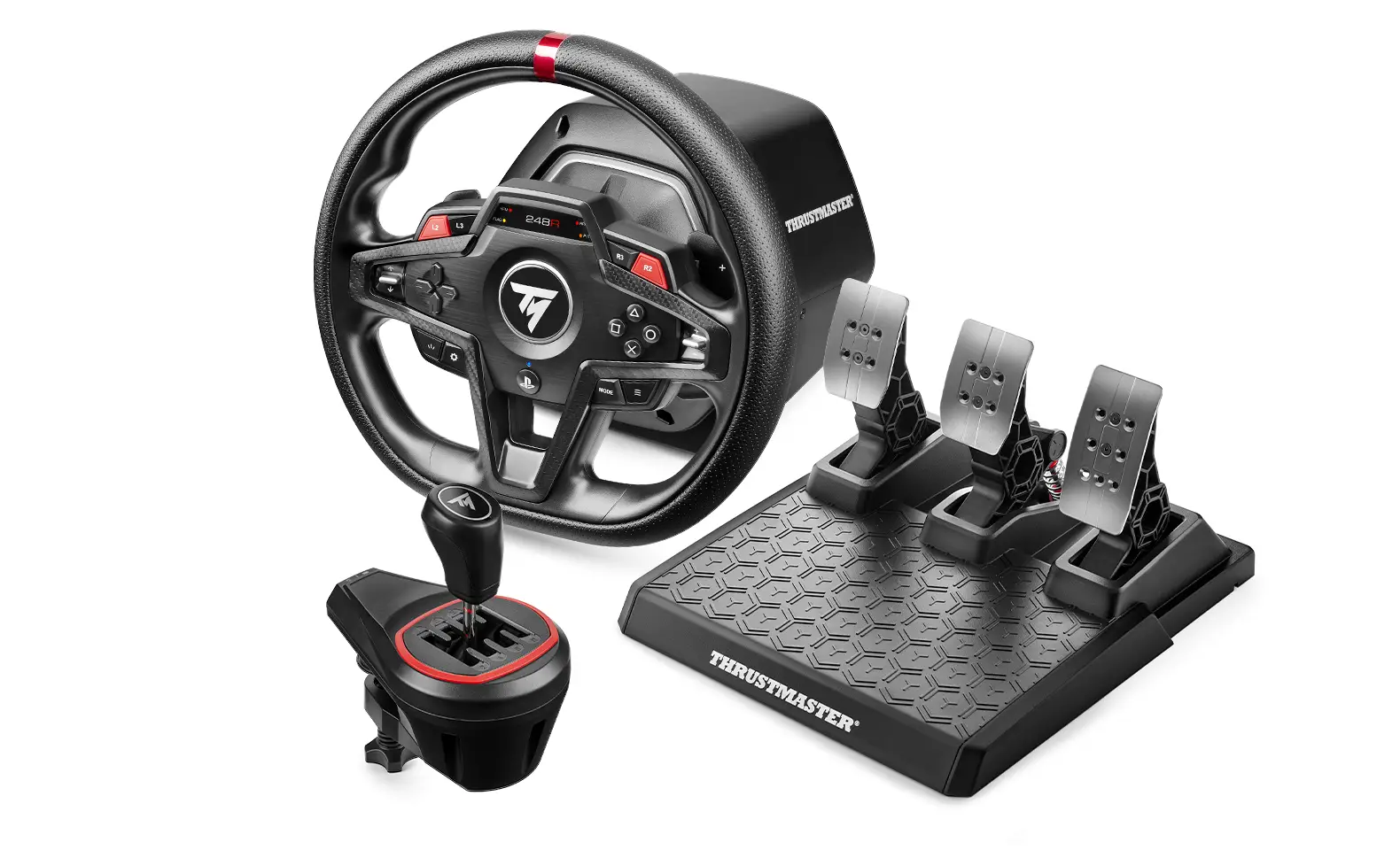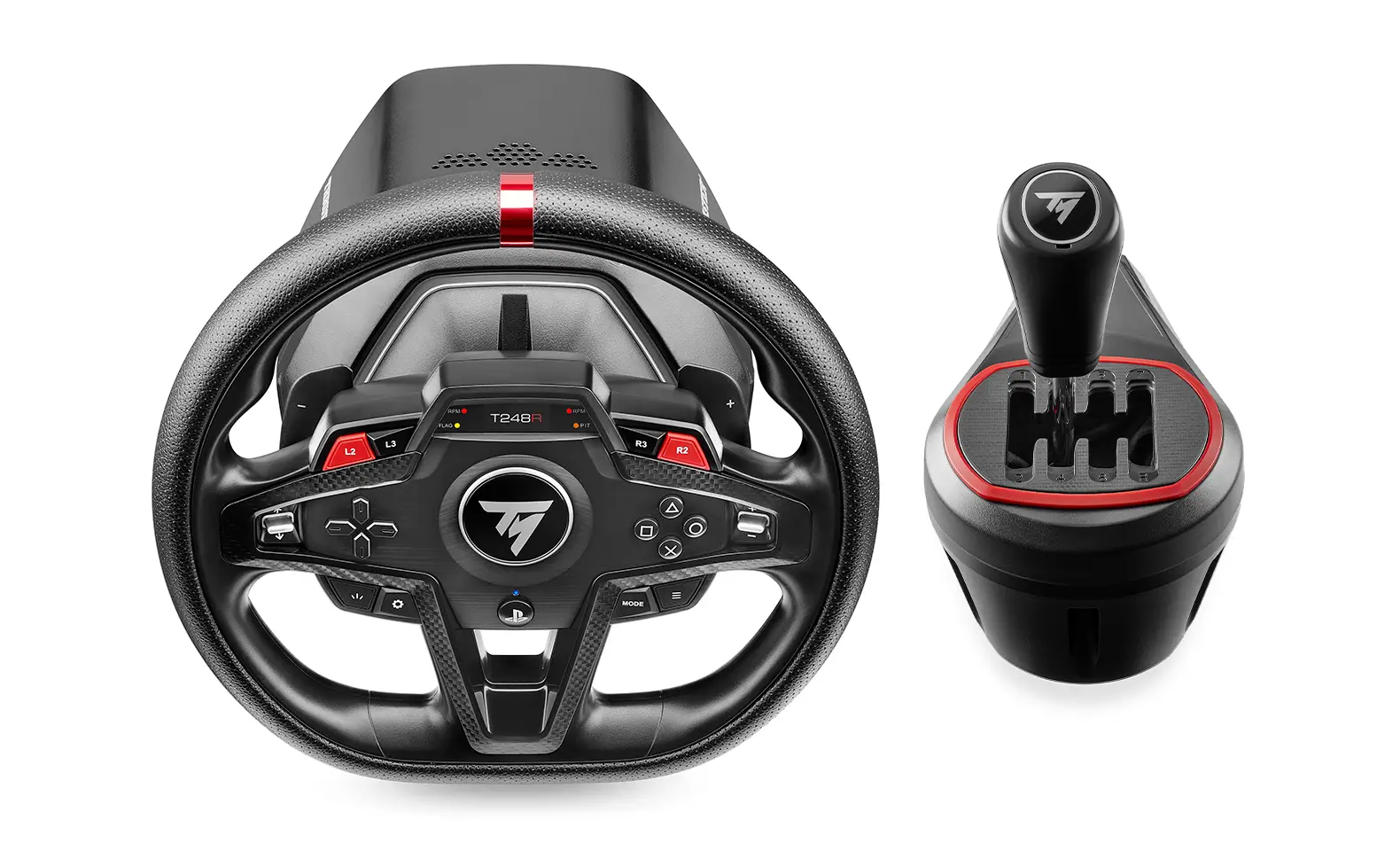 Le T248R Shifter Pack est un ensemble complet et polyvalent. Il associe le volant T248R avec son cerceau ergonomique de 28 cm en cuir synthétique perforé, le pédalier Hall Effect T3PM à 3 pédales et la boîte de vitesses manuelle TH8S, pour une expérience immersive. Une solution tout-en-un adaptée à tous les profils de joueurs, avec système d’attache intégré pour une installation facile.