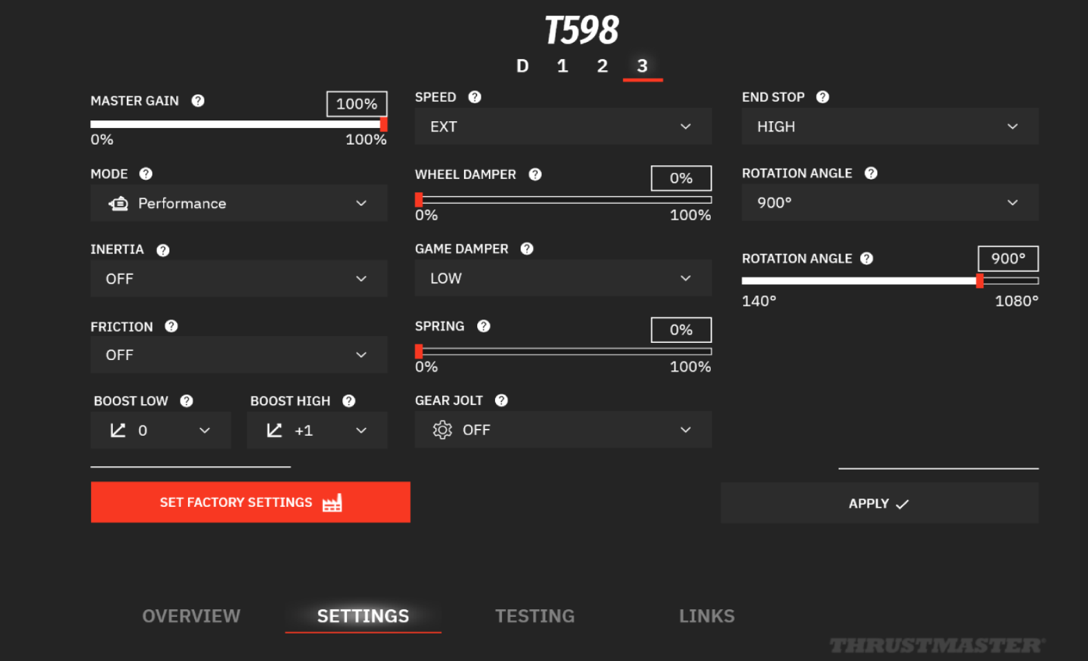 My Thrustmaster Panel (PC) est le moyen le plus simple d’ajuster les réglages de votre T598 Servo Base, tester et effectuer les mises à jour, afin que vous puissiez donner le meilleur de vous-même sur circuit !