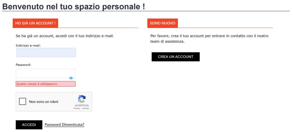 - Compila il modulo di contatto disponibile nella tua area clienti (selezionando “Supporto technico”):