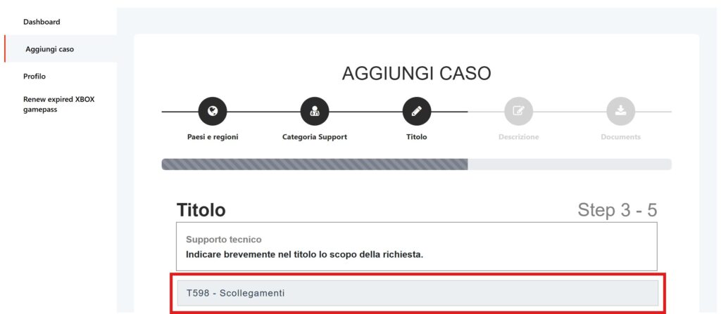 - Nel campo “oggetto” della tua richiesta di assistenza tecnica, aggiungi il seguente testo: T598 – Scollegamenti