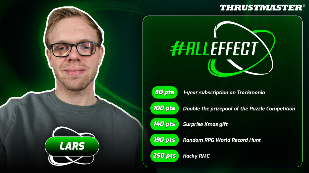 For each use of the affiliate code on our range of H.E.A.R.T controllers on the Thrustmaster shop, increase the points pool of your favourite content creator to unlock gifts for the whole community.