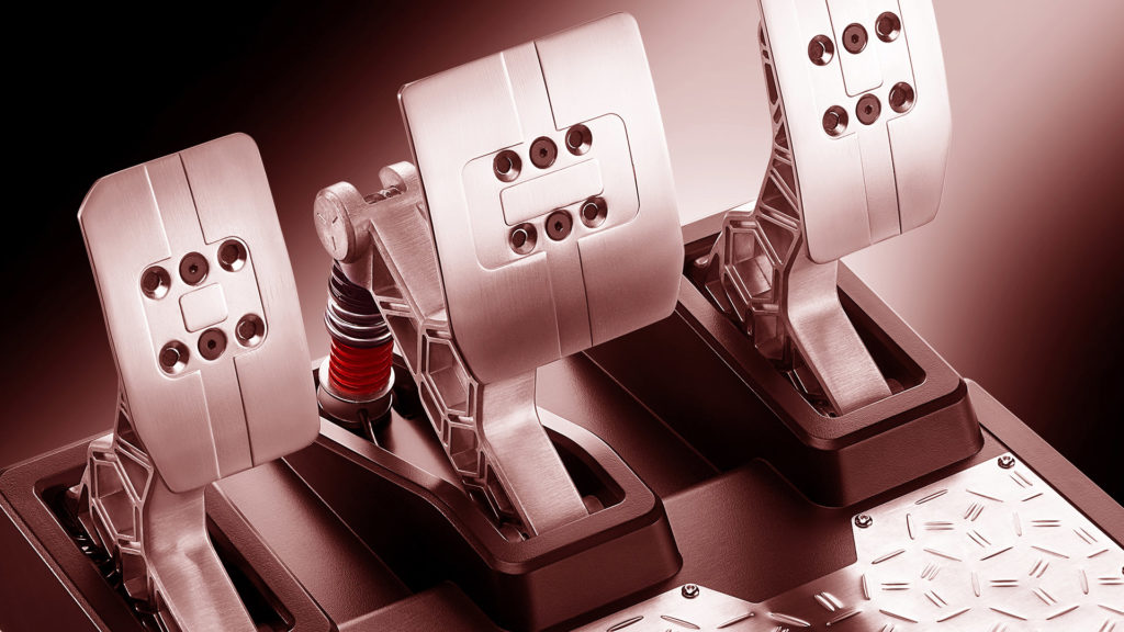 En om het geheel in stijl af te ronden, integreert u T-LCM pedals, een zeer nauwkeurige pedaalset uitgerust met loadcell-technologie. U zult nog meer genieten van uw races dankzij de krachtsensor die de ware intensiteit van de remkracht weergeeft! Sterker nog, de 100% metalen structuur past zich aan alle mogelijke rijconfiguraties aan.