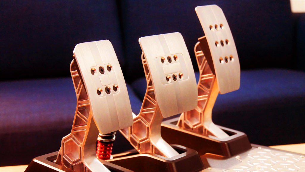Zestaw pedałów obejmuje znajdujący się po lewej stronie pedał hamulca i umieszczony z prawej strony pedał przyspieszenia. Zmianę przełożeń umożliwiają łopatki zmiany biegów zamocowane za kierownicą, tak jak w prawdziwym samochodzie wyścigowym. W porównaniu ze spustami w kontrolerze gier pedały umożliwiają lepszą ocenę stopnia przyspieszania i hamowania oraz bardziej precyzyjne i subtelne wykonywanie tych czynności.