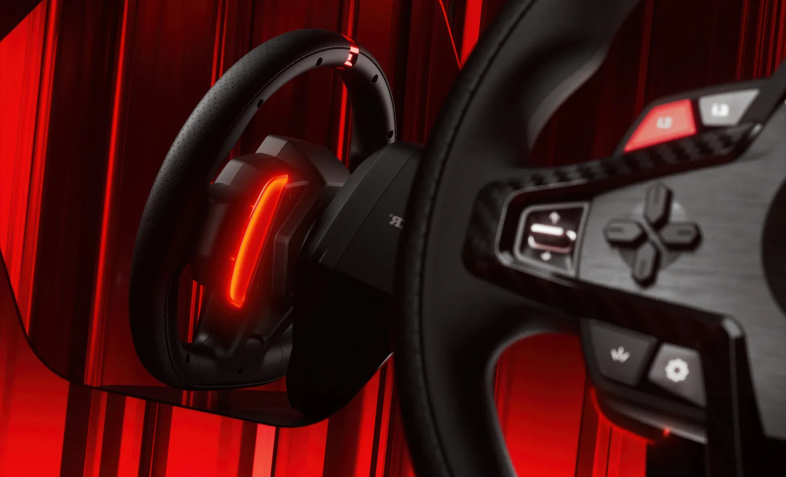 O versátil volante tudo-em-um, dotado de um sistema híbrido de efeitos Force Feedback T-HD que fornece um binário de 3,1 N⋅m e é acompanhado pelo seu conjunto de 3 pedais. Incorpora uma interface da próxima geração com ecrã LCD a cores e luzes LED e destaca-se pelo seu novo design desportivo.