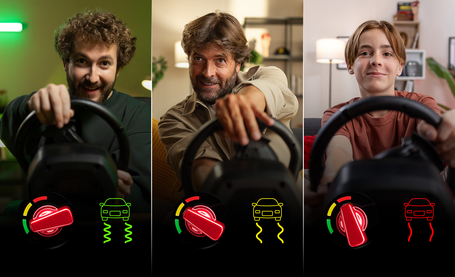 O seletor inspirado no emblemático Manettino da Ferrari permite-lhe alternar entre os 3 perfis de apoio à condução: desde o mais realista até ao mais fácil de utilizar. Desta forma, o T98 Ferrari 296 GTS adapta-se a todos os perfis de jogadores – desde principiantes até pilotos experientes. Mude de um perfil para outro no momento e partilhe momentos inesquecíveis com a família e amigos.