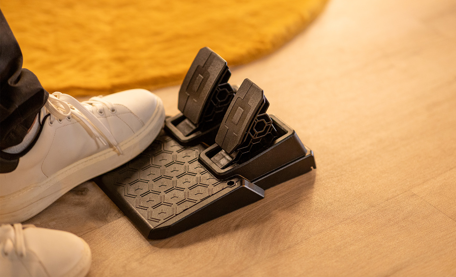 O conjunto de pedais T3PM está equipado com sensores Hall Effect (H.E.A.R.T.), com zero contacto ou fricção, para uma precisão fiável e duradoura. Oferece 4 níveis de pressão ajustáveis no pedal do travão, permitindo-lhe ajustar a resistência para se adequar a diferentes estilos de condução e garantir uma travagem de alto desempenho realista.