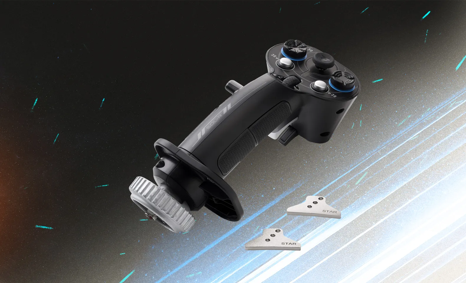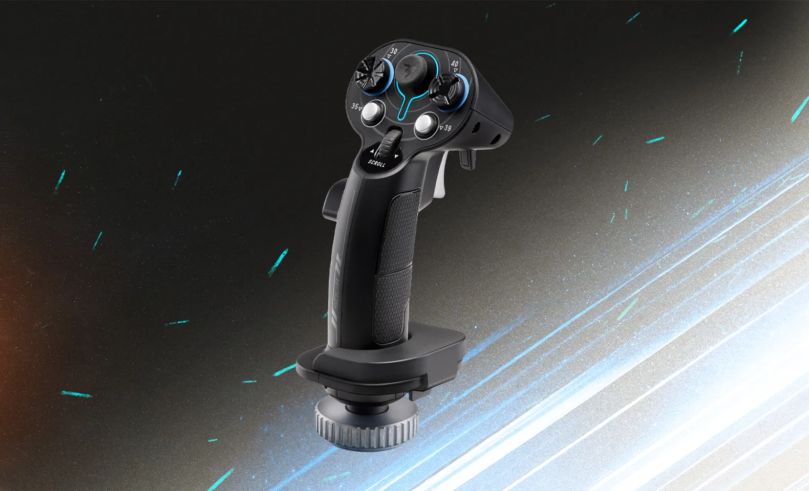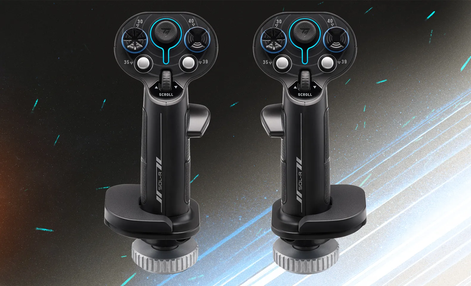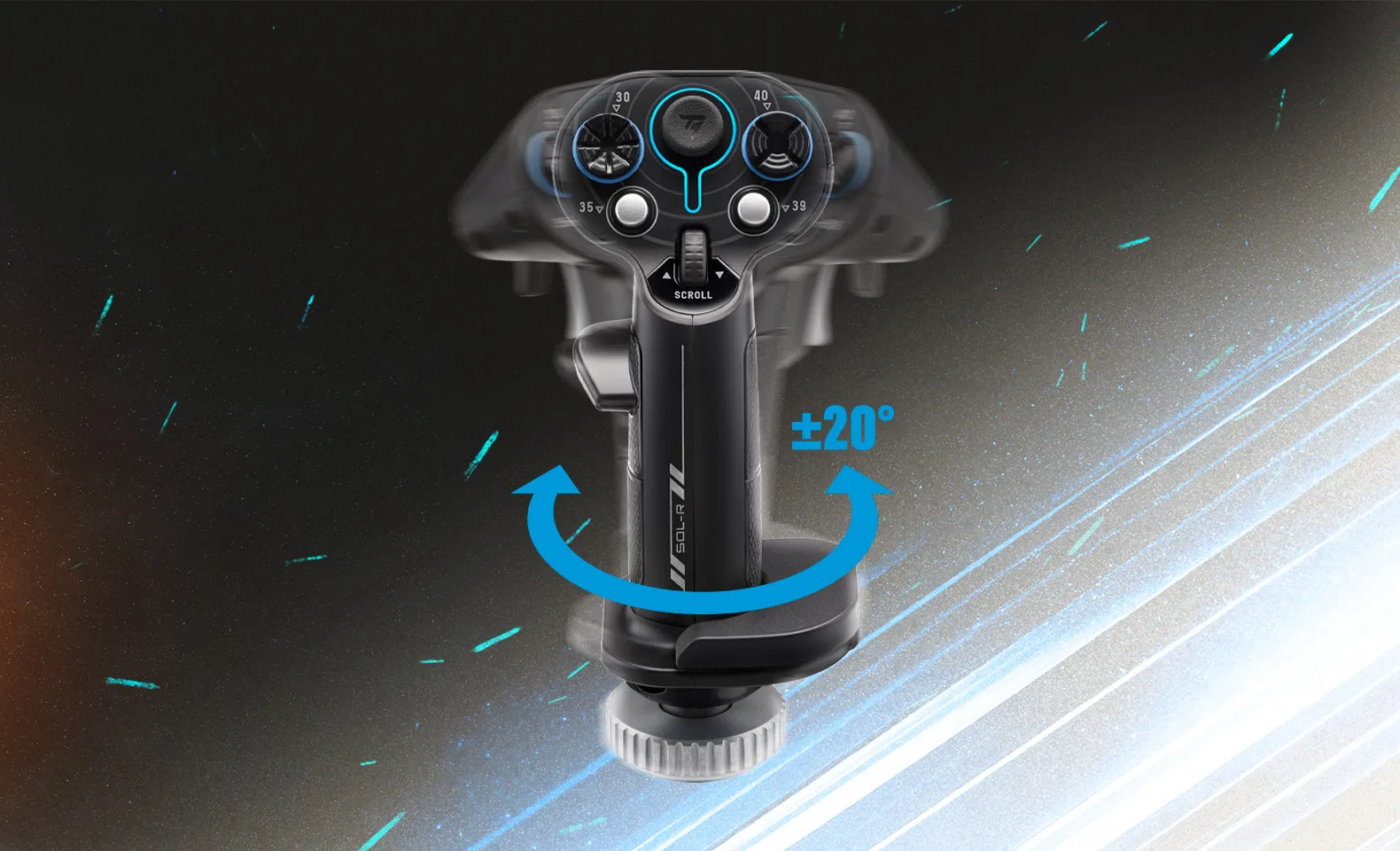 O Sol-R 3 AVA Add-On Grip é o punho ideal para a simulação espacial graças ao eixo Z integrado, o qual é essencial para controlar a sua nave. O eixo Z e os 2 eixos virtuais (minialavanca e seletor rotativo) utilizam tecnologia H.E.A.R.T. (HallEffect AccuRate Technology™) com sensores magnéticos para uma precisão cirúrgica.